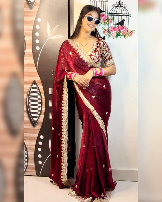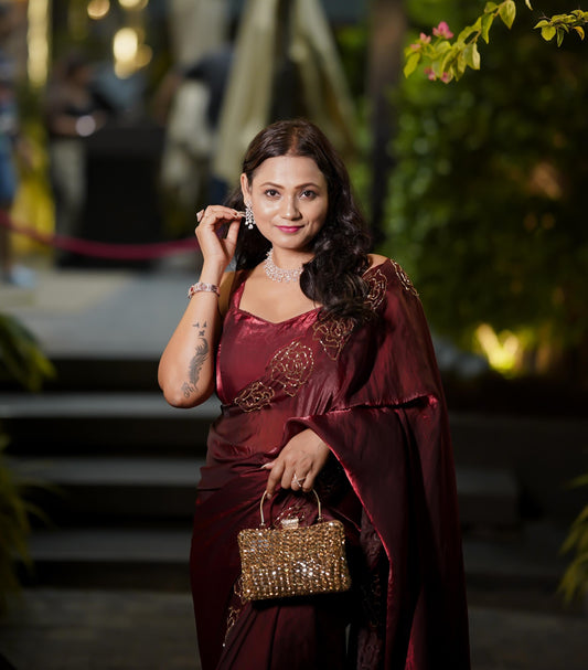 Luxe Fendy Satin Saree with 3mm Sequin Embroidery