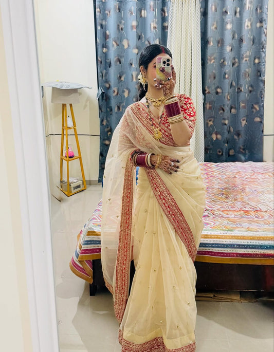 Luxurious Glam Handwork Saree Premium Space Silk with Beads Work