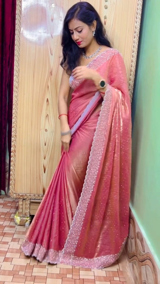 Luxurious Glam Handwork Saree Premium Space Silk with Beads Work