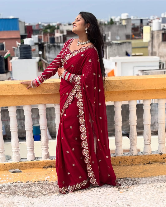 Luxe Fendy Satin Saree with 3mm Sequin Embroidery