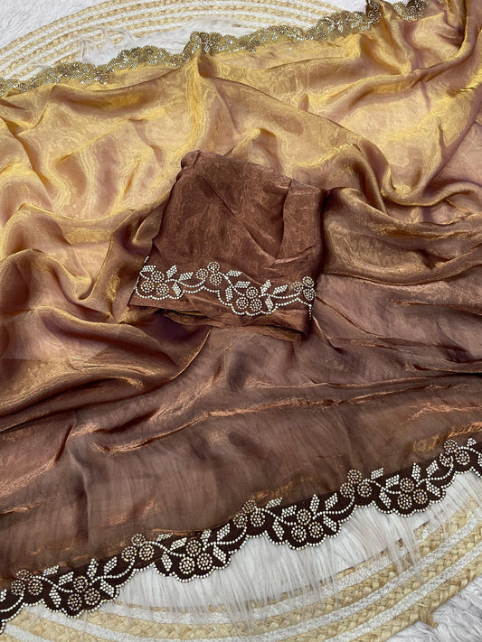 Premium Space Silk Padding Saree Jarkan & Siroski Handwork