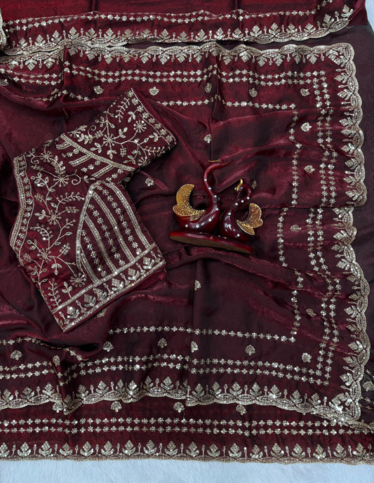 PREMIUM ZIMMY CHOO SILK EMBROIDERED SAREE