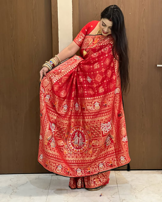 Rich Border Work Banarasi Meena Dola Silk Saree