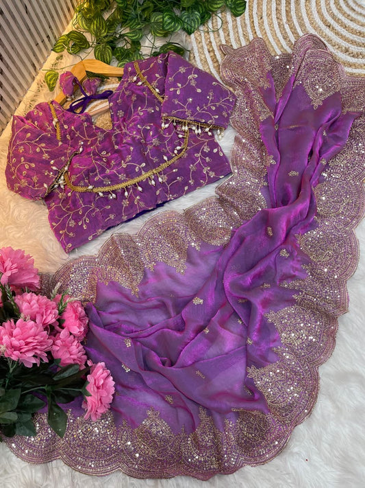 Pure Soft Fendy Chiffon Embroidered Saree with Heavy 3 mm Sequence Border