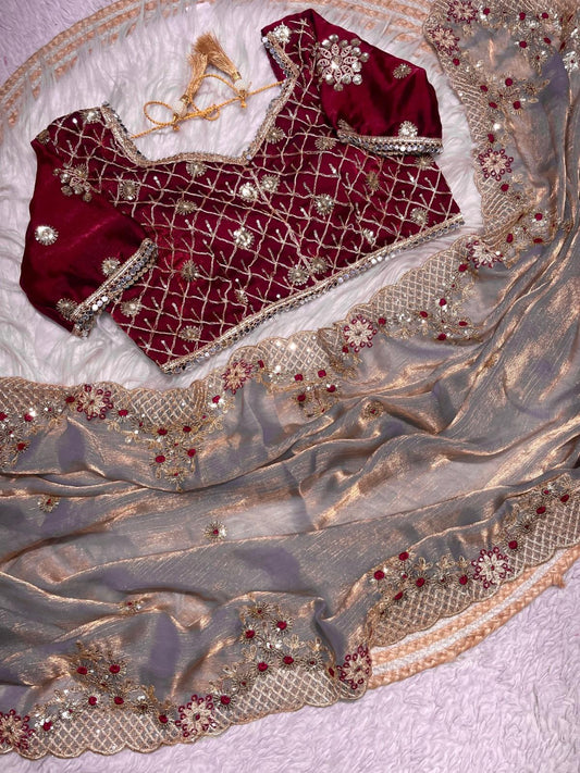 Elegant Tissue Silk & Cotton Blend Saree with Sifli Work Blouse