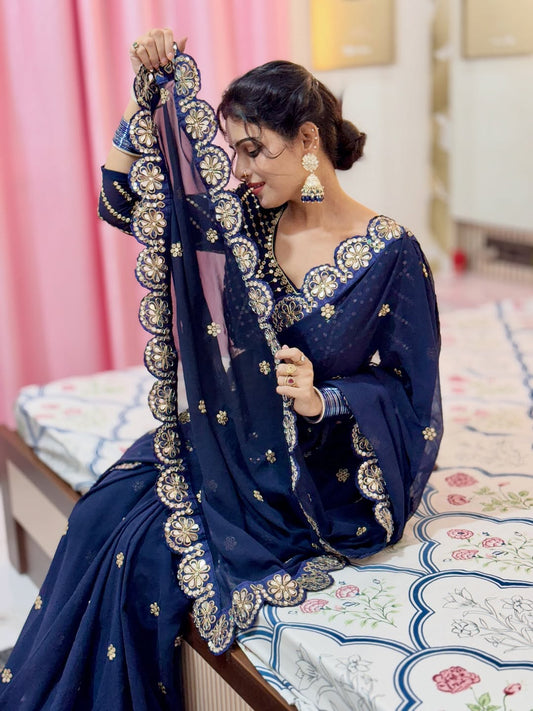 Luxury Soft Twill Net Saree With Heavy Sequin & Jari Dori Work