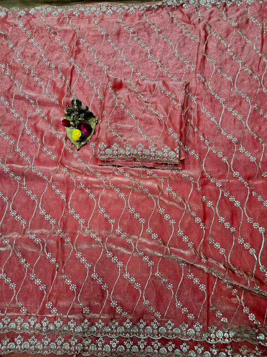 Premium Dola Viscose Saree with Jari Weaving & Pita Embroidery Work