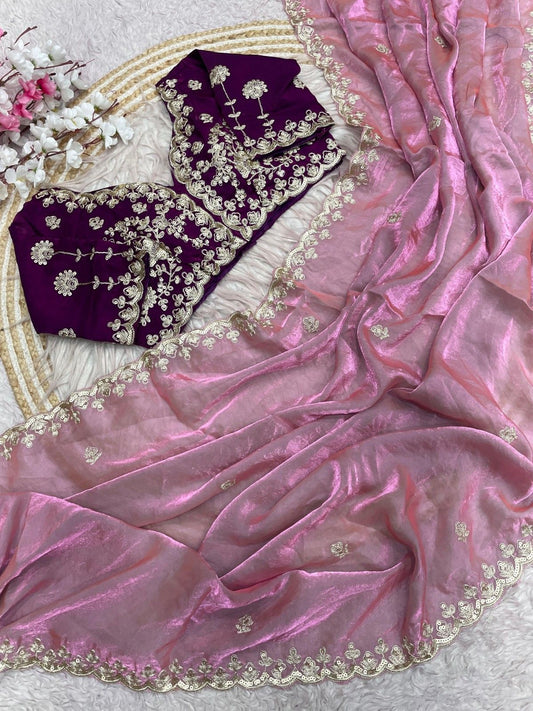 Premium Designer Saree Soft Jimmy Choo Fabric with Sequins Cutwork Border