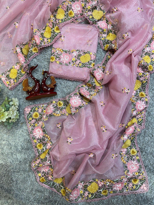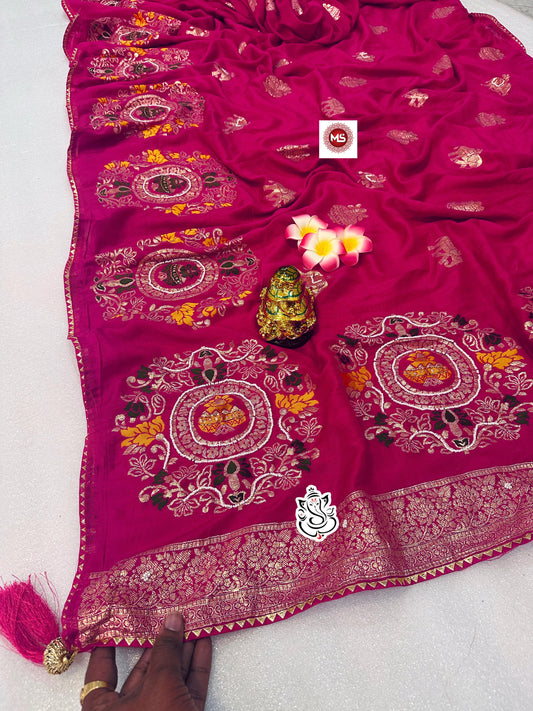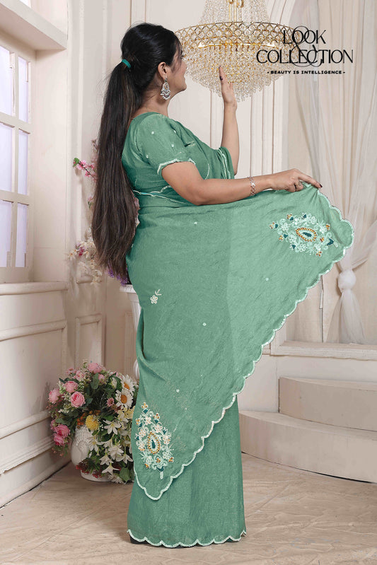Presenting Light Green Full Handowrk saree On Fandy Crush Fabric