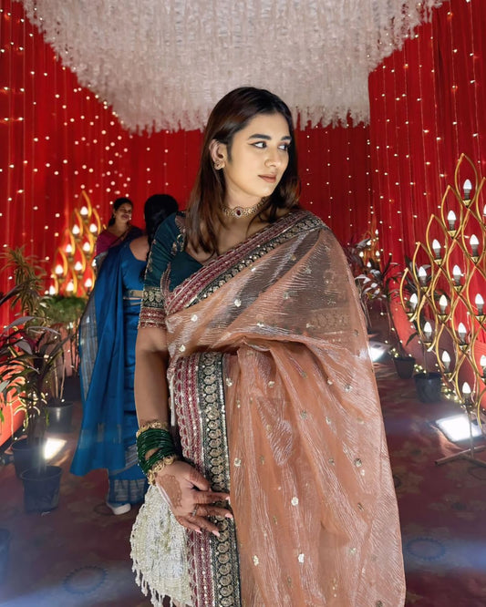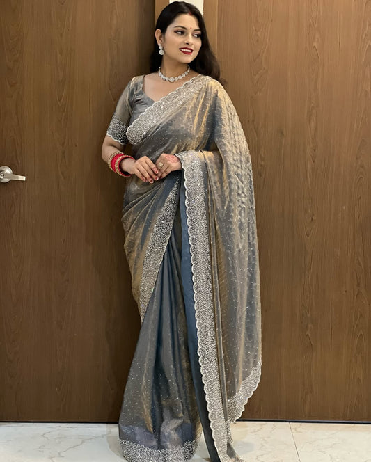 Designer Twill Net Saree with Diamond & Thread Work
