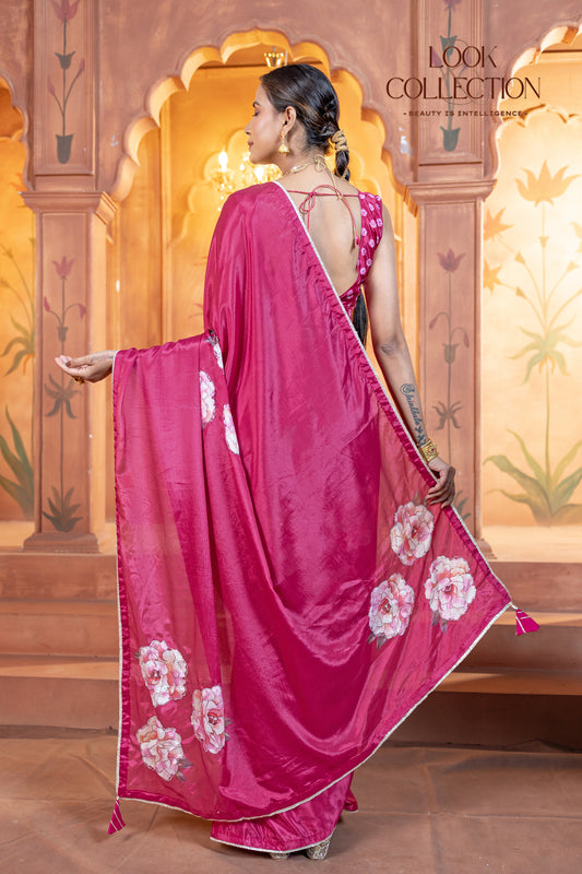 Floral Handwork Printed Pure Chinon fabric Saree
