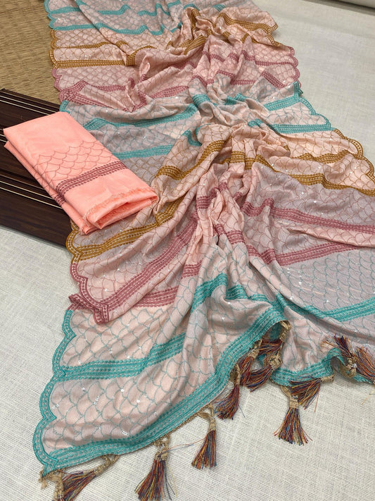Premium Embroidered Georgette Saree with Zari & Sequin