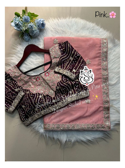 Premium Bandhej Soft C*C Georgette Saree with Pitta & Sequin Work