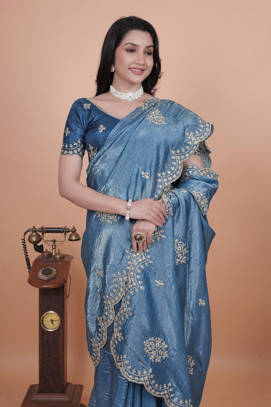 Luxury Soft Twill Net Saree With Heavy Sequin & Jari Dori Work
