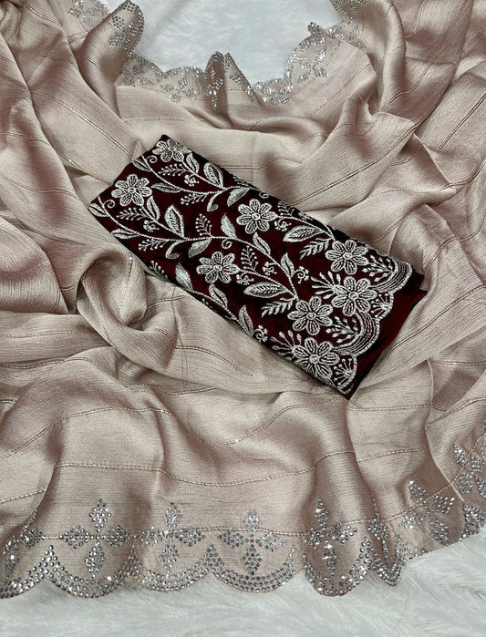Soft Jimmy Choo Saree with Sequin & Zari Embroidery