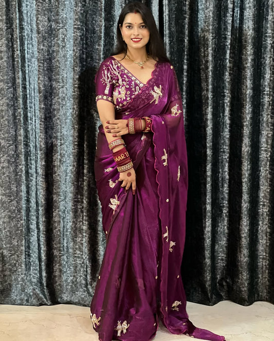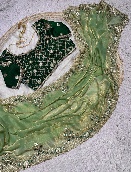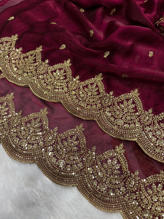 Soft Twil Net Saree with Premium Sequins & Dori Embroidery Blouse