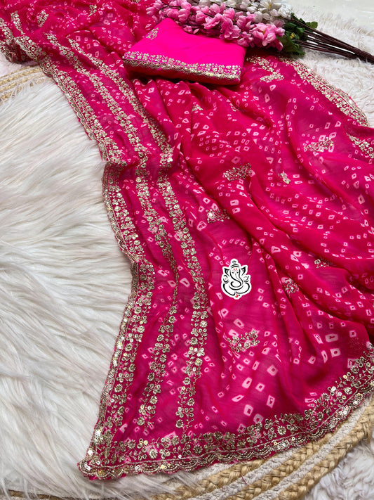 Fendy Chiffon Sequance Zari Work Saree