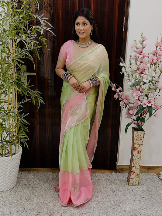Soft Jimmy Choo Saree with Sequin & Zari Embroidery