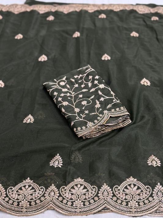 NC Moss Tissue Saree with Resham & Zari Embroidery