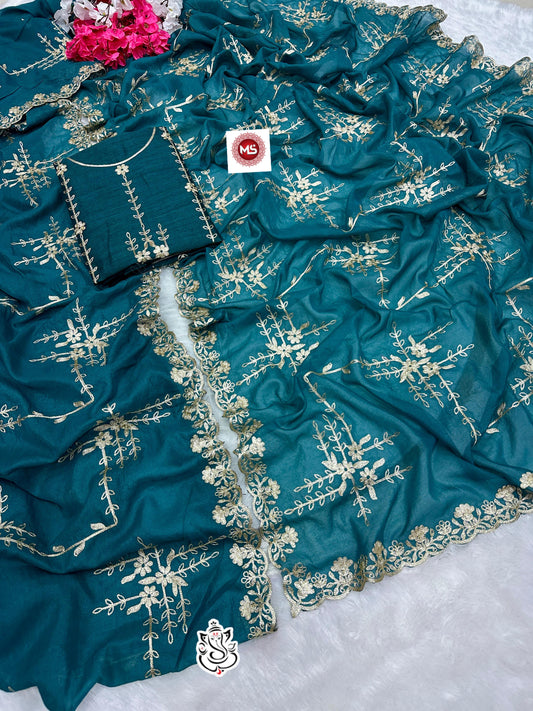 Premium Heavy Zimmy Chu Silk Saree with Embroidered C-Pallu