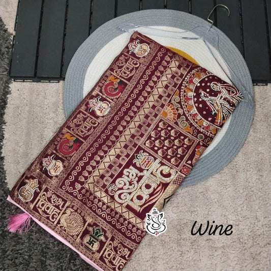 Premium Fandy Satin Digital Print Saree with Jarkhan & Siroski Work