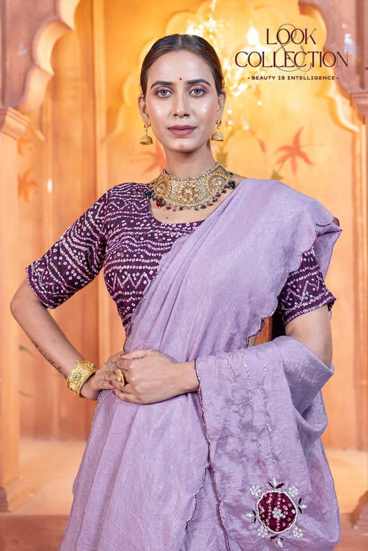 Moss Stitch Foil Saree with Cutwork Border & Fancy Blouse