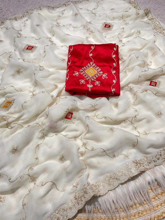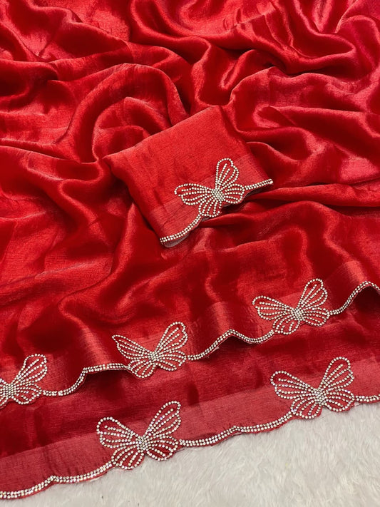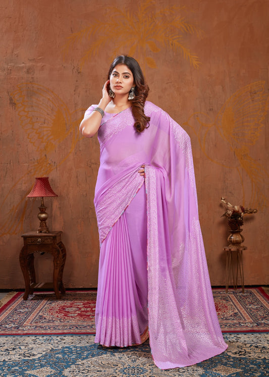 Premium Fendy Chiffon Saree with Complete Zarkan Diamond Work