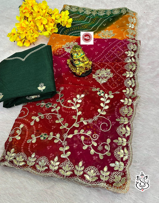 Vibrant Blend C*C Georgette Bandhej Panchrangi Saree