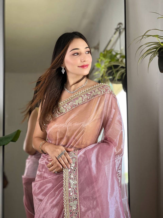 Silver Tissue Silk Saree with Designer Embroidery & Mirror Work