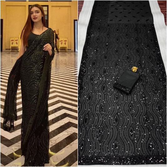 Premium Heavy Blooming Georgette Saree with All-Over Sequins & Peacock