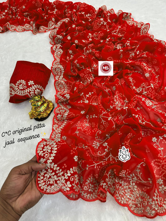 Premium C*C Special Bhandej Pattern Georgette Silk Saree