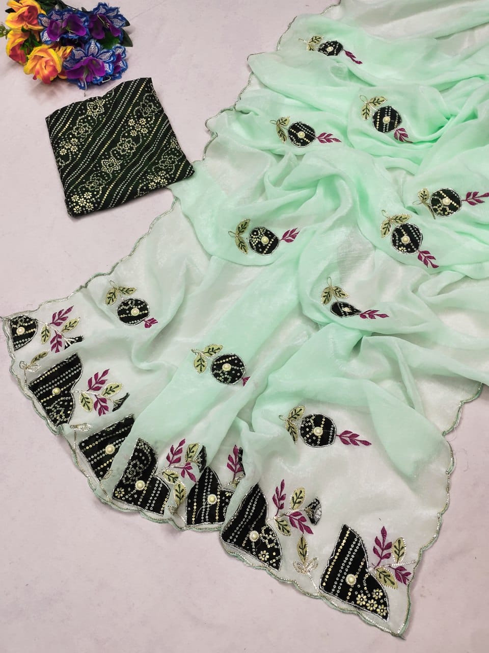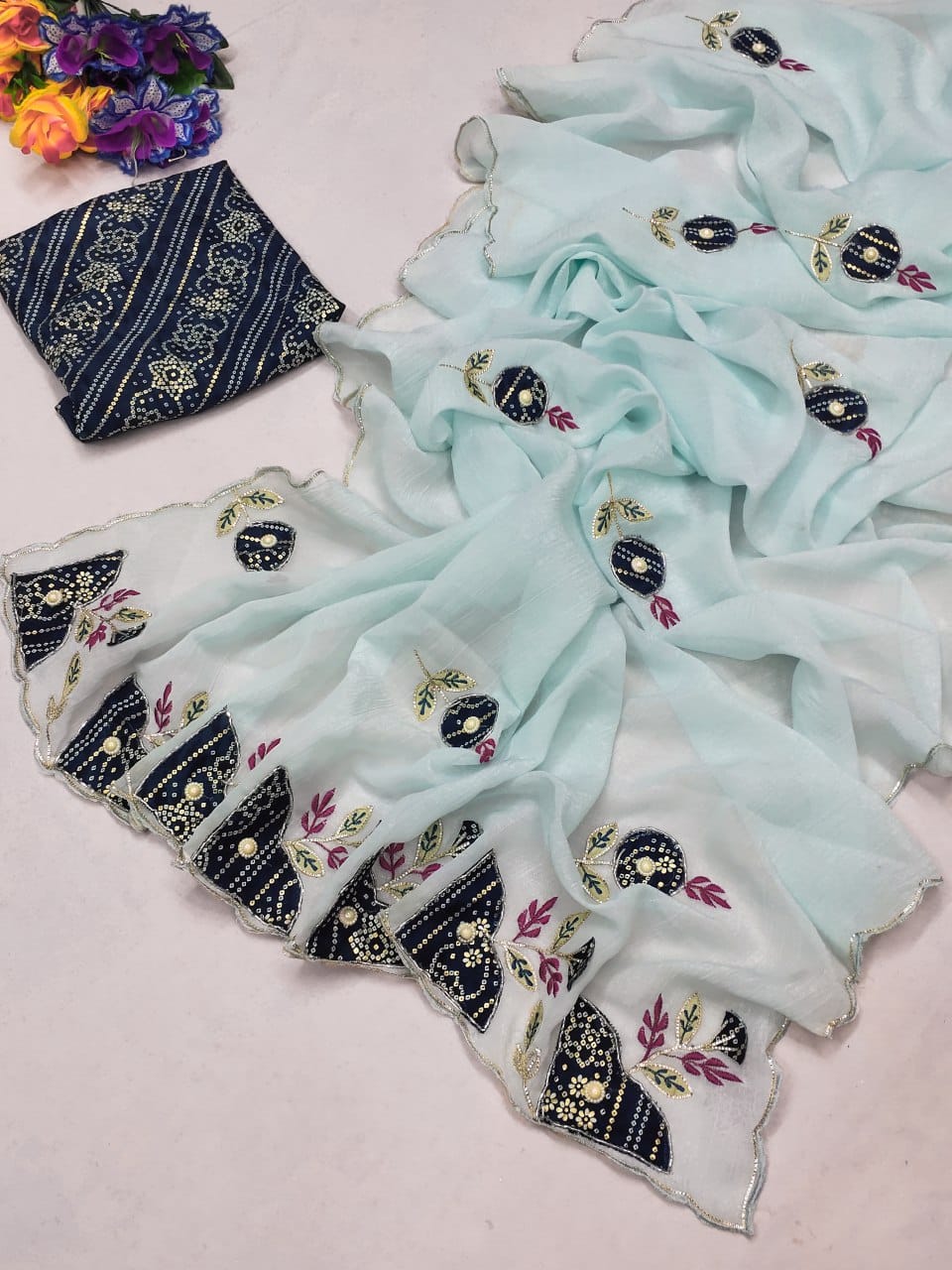 💃 Fabric: Premium Crunchy Chiffon — lightweight, flowy, and luxurious to touch.