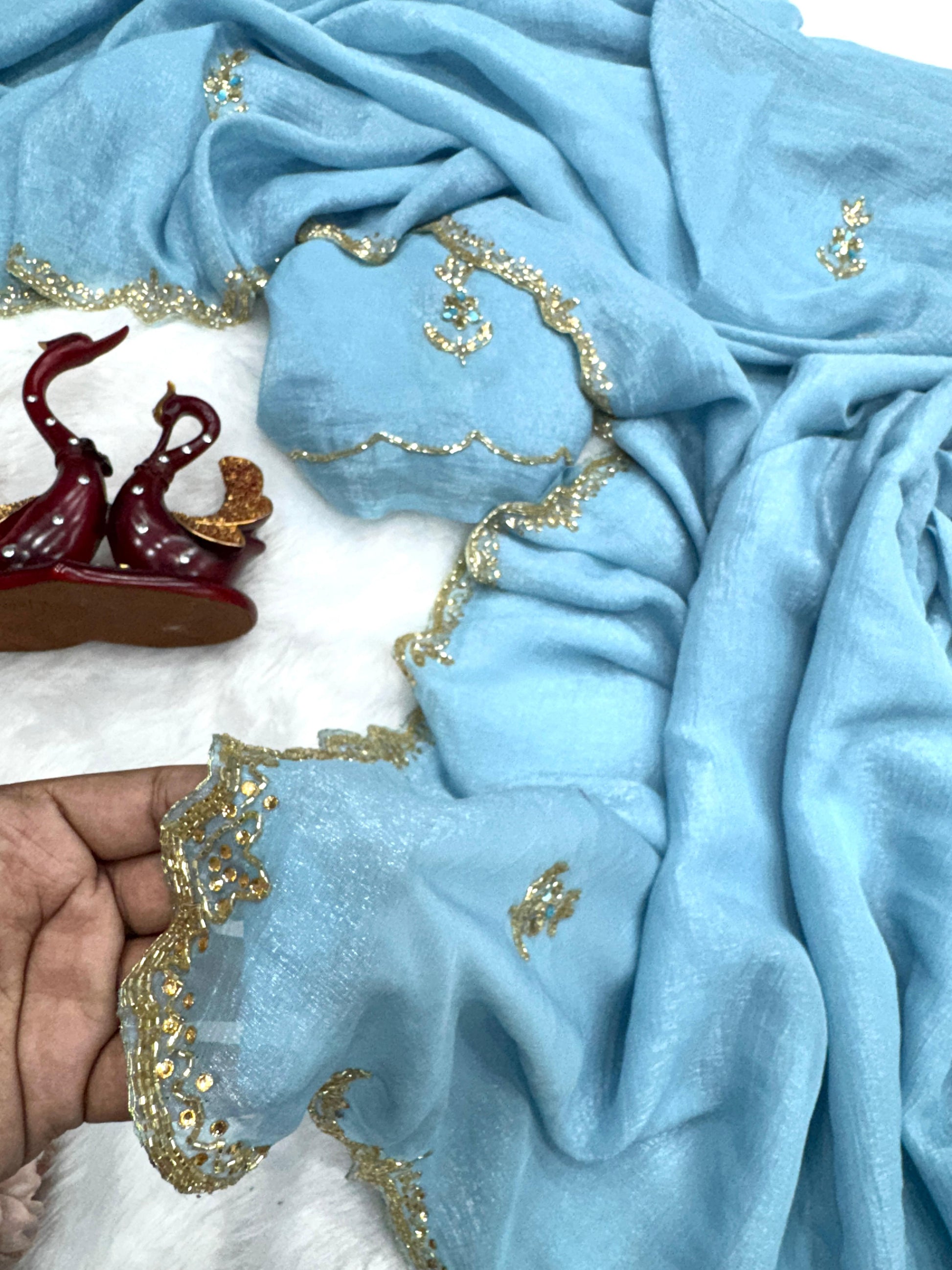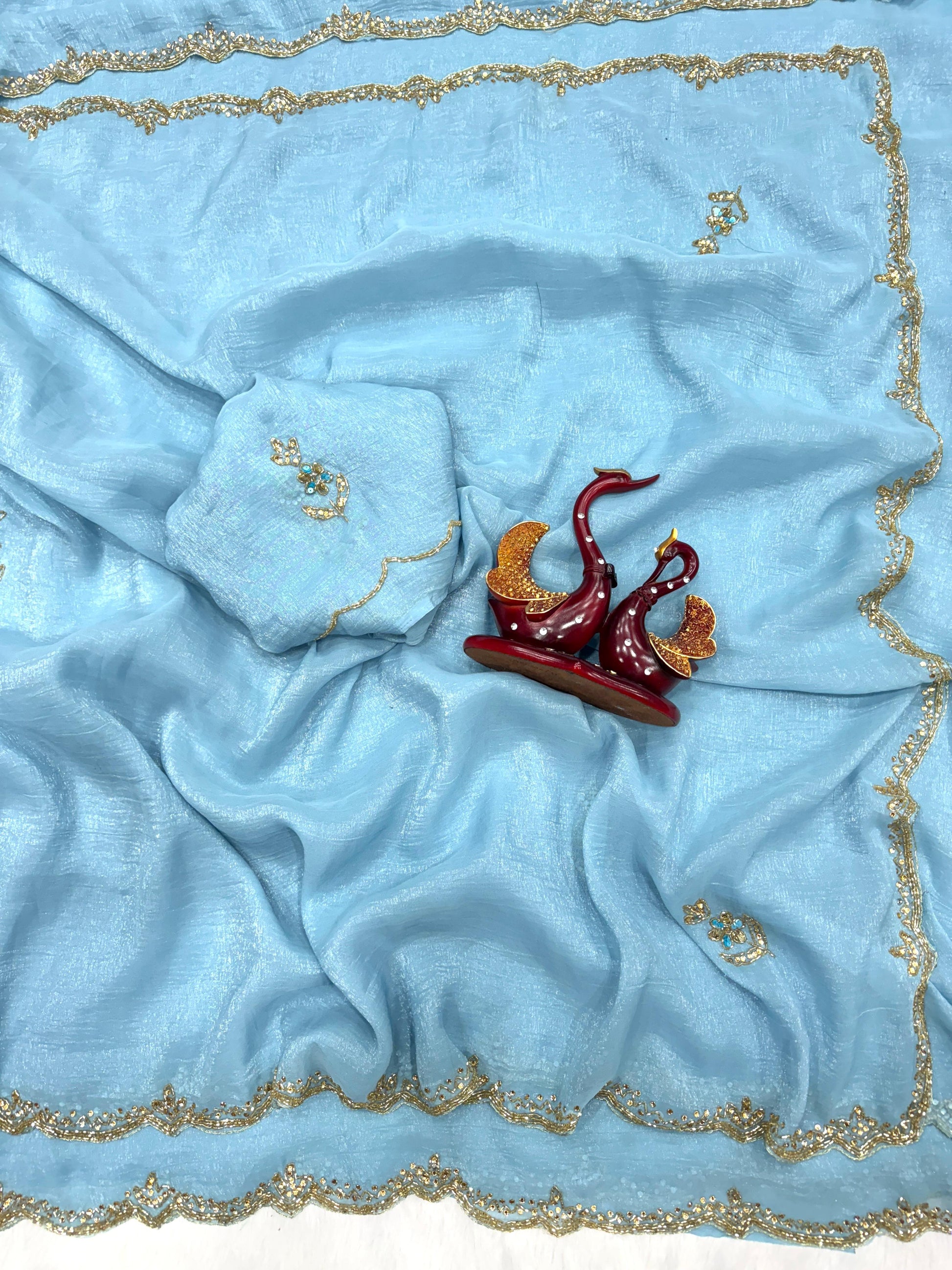 Premium Pixel Crush Saree with Katdana & Diamond Handwork