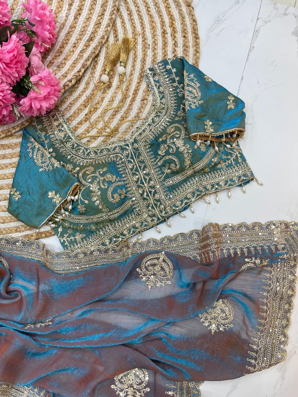 Premium Two-Tone Fendy Chiffon Embroidered Saree