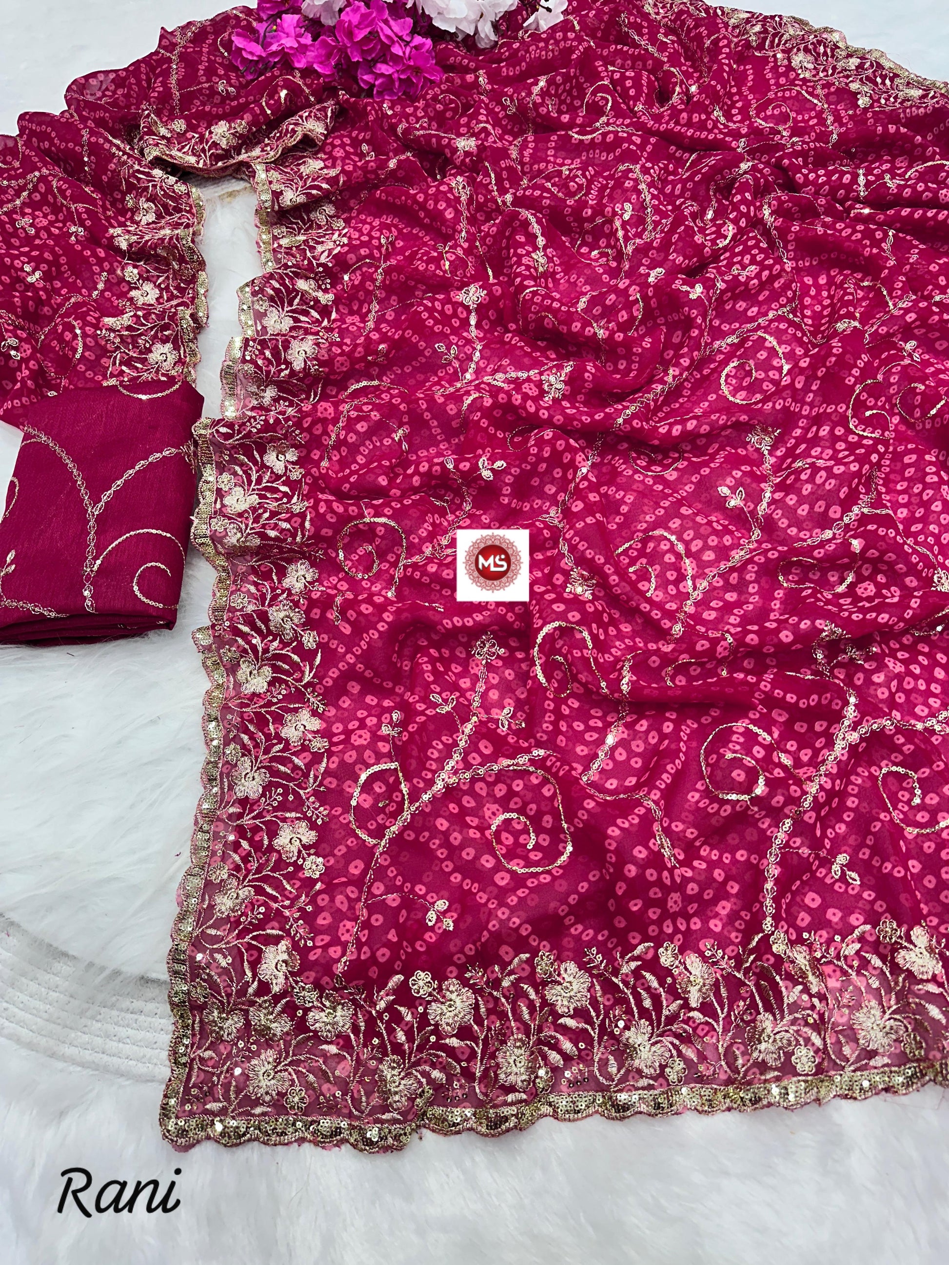 Soft Georgette Silk Bandhani Saree Heavy C-Pallu Sequins & Zari Work